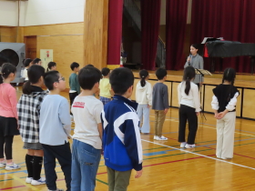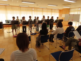 外部講師の大内先生のご指導のもと、全校で合唱練習を行いました。  |