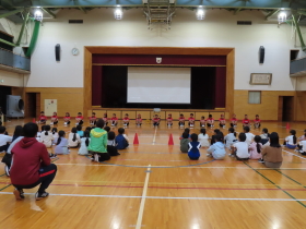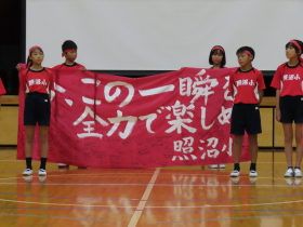 22日の陸上記録会に向けて壮行会を行いました。  |
