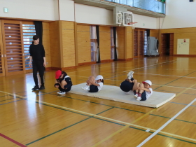 3・4年生の体育のようすです。今日はマット運動を行いました。  |