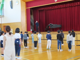 外部講師の大内先生のご指導のもと、全校で合唱練習を行いました。 |