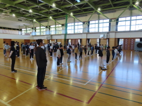 22日の陸上記録会に向けて壮行会を行いました。 |