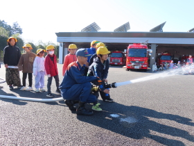 3年生が消防署の見学に行きました。緊急車両について学習し、放水体験もすることができました。 |
